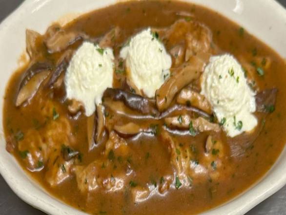 Authentic Old-World Recipe achieved by using a glorious Marsala Wine produced in Sicily since 1832 by the same Sicilian family. Scaloppini of tender Veal is seared and married with a rich sauce of Shallots, Aromatic Porcini and Shiitake Mushrooms, Marsala Wine and Veal Reduction. Topped with Fresh Burrata Cheese. Served with Sedanini Pasta with Vodka Sauce.