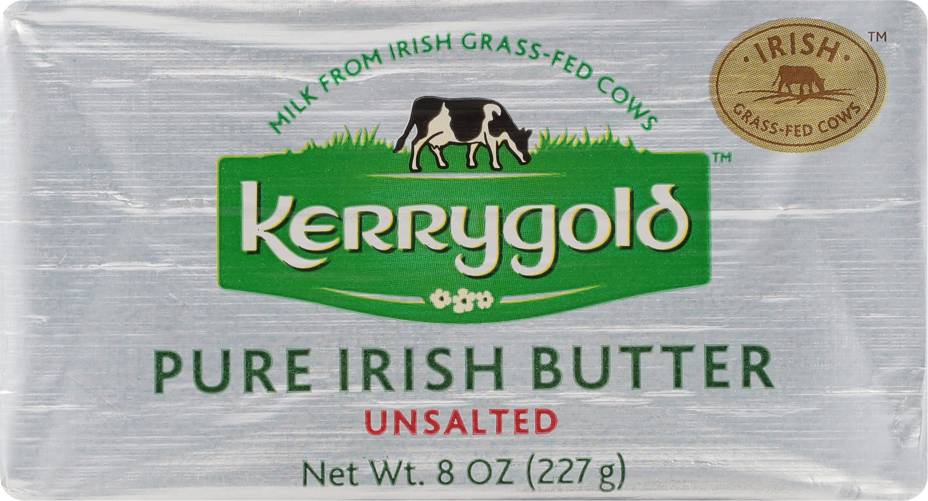 All Kerrygold butter comes from the milk of grass-fed cows that are free of growth hormones. Our Unsalted Butter is creamy Irish butter with a nuanced cultured flavor profile. Kerrygold Unsalted Butter has a higher butterfat content and is a perfect butter for baking. You’ll notice its grass-fed cow’s milk richness when you bake for the first time and find your pie crusts are flakier and your cookies are more delectable thanks to Pure Irish Butter. • Size: 8 OZ • Ornua Foods North America, Evanston, Il 60201.