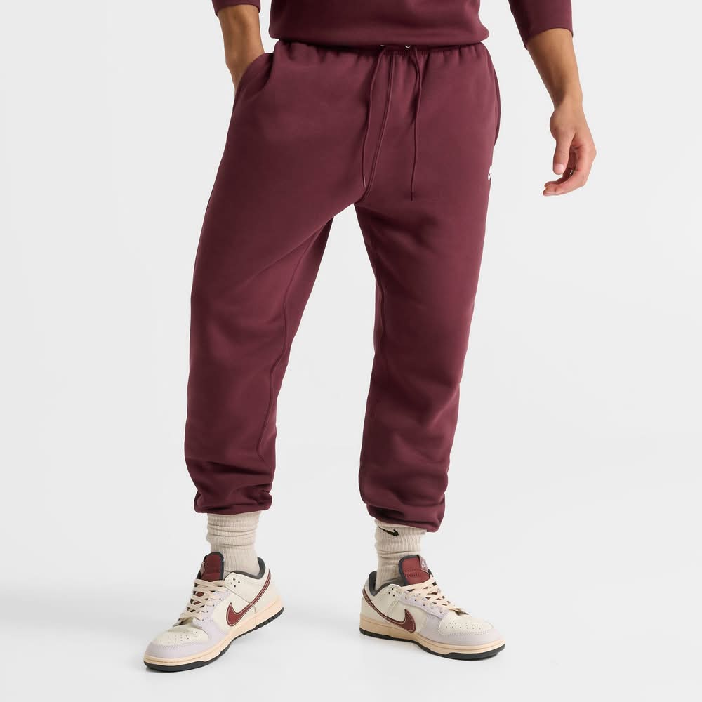 Size & Fit Standard fit is athletic and relaxed through the seat and thighs and tapers towards the ankle Product Features Midweight brushed fleece feels extra soft on the inside and smooth on the outside Embroidered Nike Futura logo on the left thigh delivers classic heritage style Elastic waistband with rounded drawcords and hardware eyelets for a comfortable fit Convenient side pockets and a snap closure back welt pocket provide space for on-the-go necessities Ribbed ankle cuffs streamline the fit and show off your kicks67-81% cotton, 19-33% polyester. Check label for actual percentages Machine wash The Nike Club Fleece Premium Jogger Pants are imported. Crisp, clean sportswear style links up with unbeatable comfort on the Men's Nike Club Fleece Premium Jogger Pants. The ultra-soft, midweight Club Fleece fabric features minor enhancements, such as a premium drawcord and hardware eyelets, upgrading the fan-favorite design for even more timeless style and exceptional comfort on a must-have wardrobe staple. | Nike Men's Club Fleece Premium Jogger Pants in Dark Team Red/Dark Team Red/White | Size: Medium • Color: Dark team red/dark team red/white • Size: Medium • male