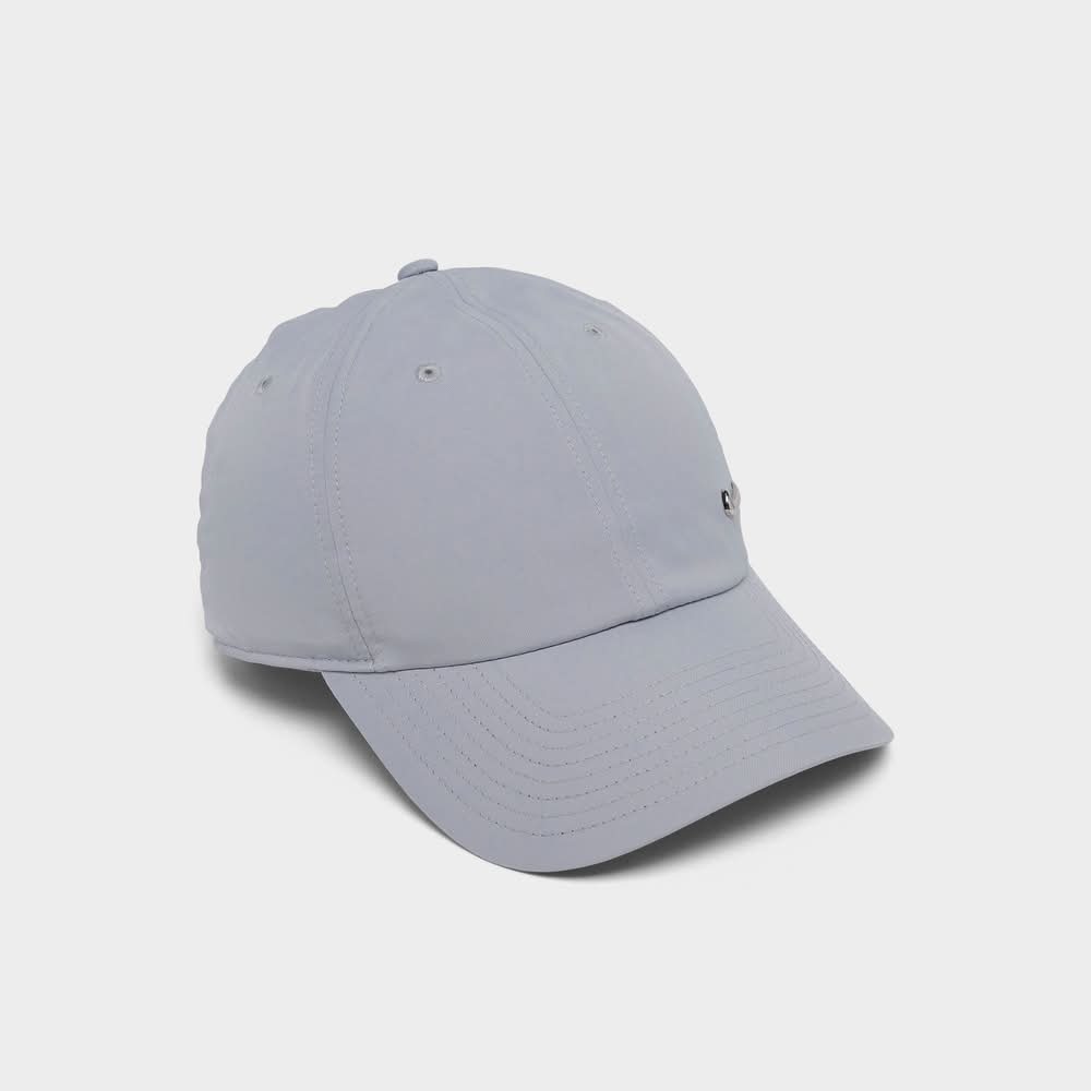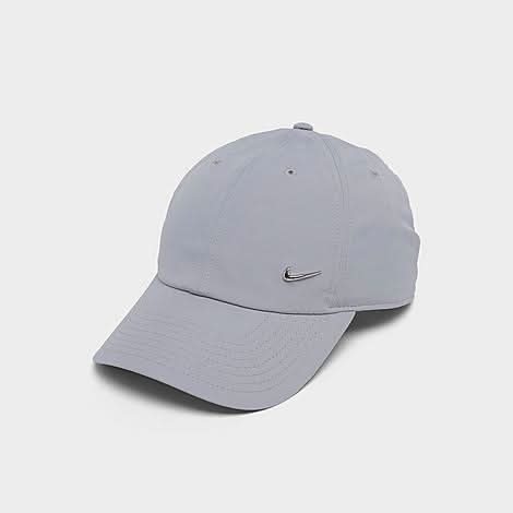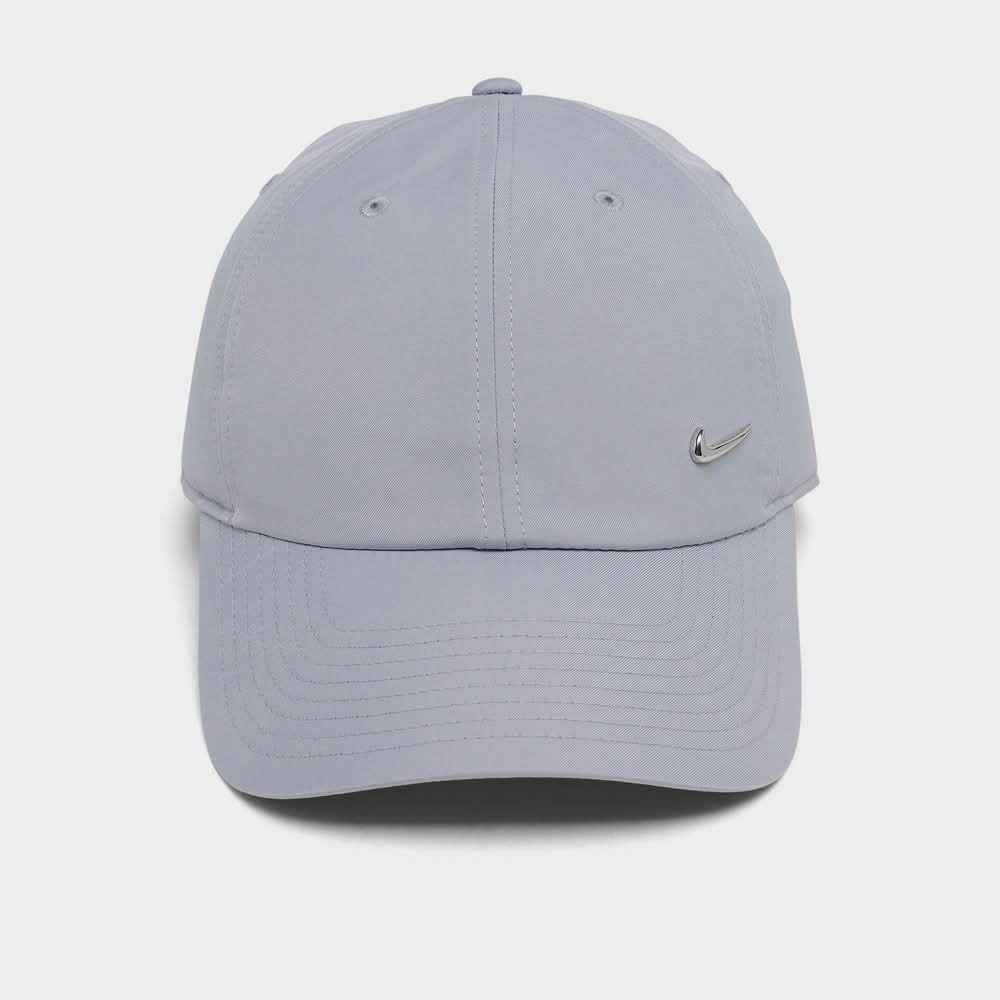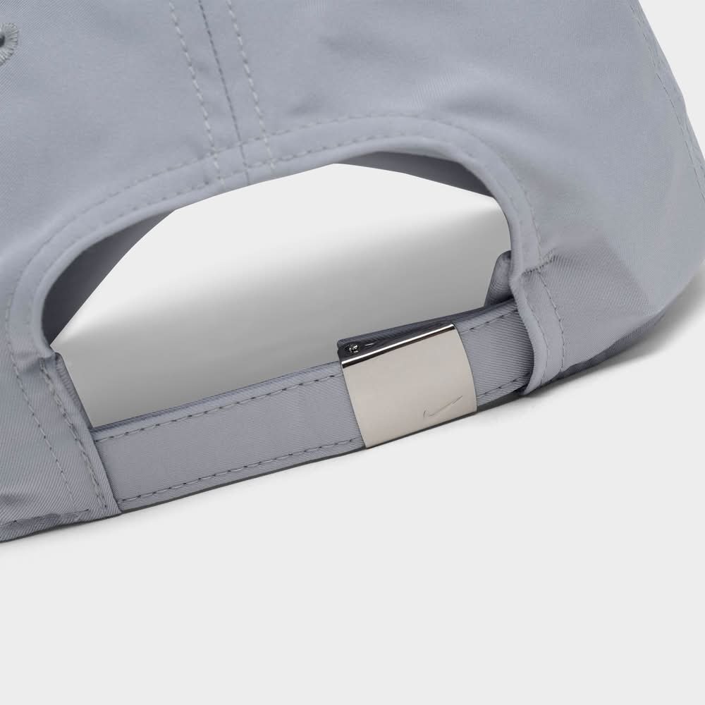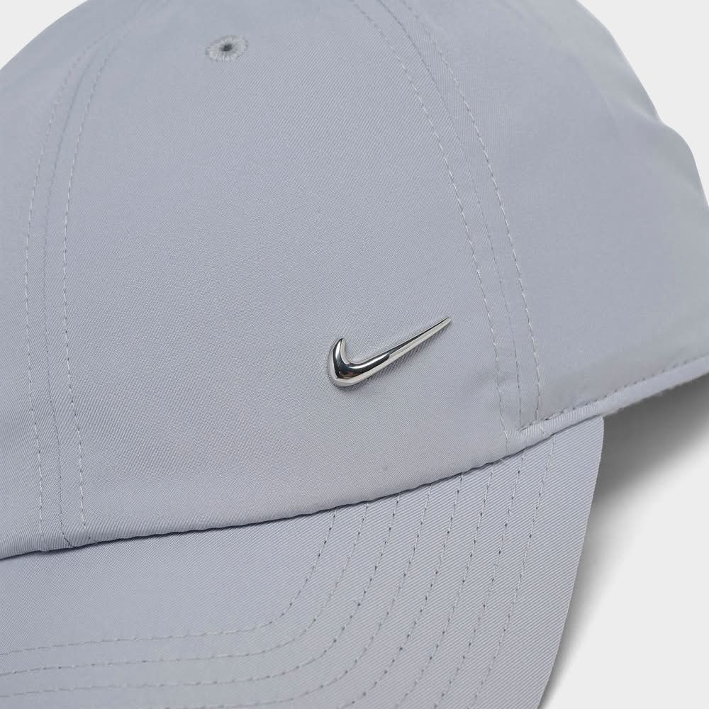 Nike Dri-Fit Club Unstructured Metal Swoosh Strapback Hat, M/L, Light Smoke Grey/Metallic Silver