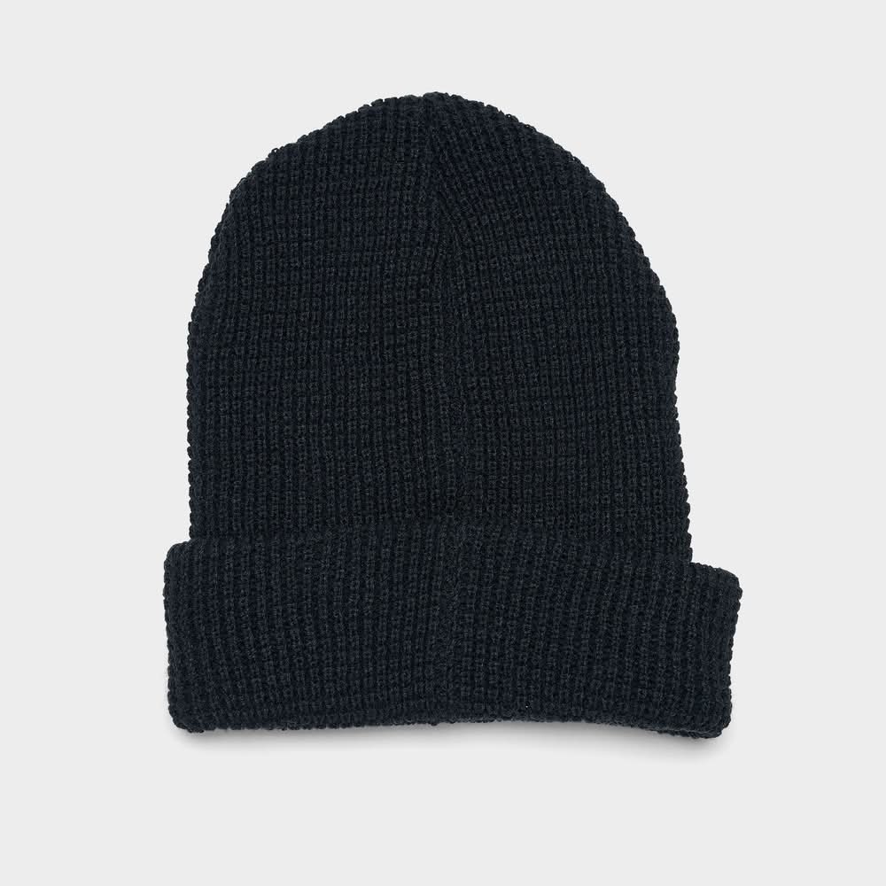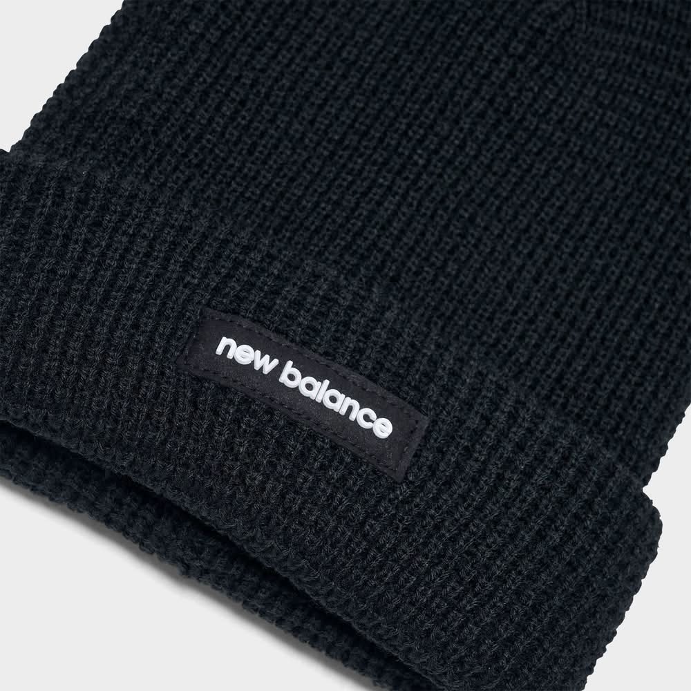 Warm waffle knit fabric Foldable cuff New Balance label Spot clean The New Balance Waffle Knit Beanie Hat is imported. Stay warm when winter weather rolls in with the New Balance Waffle Knit Beanie Hat. It has a classic waffle knit design and a foldable cuff so you can adjust the fit. | New Balance Waffle Knit Beanie Hat in Black • Color: Black • Size: One Size