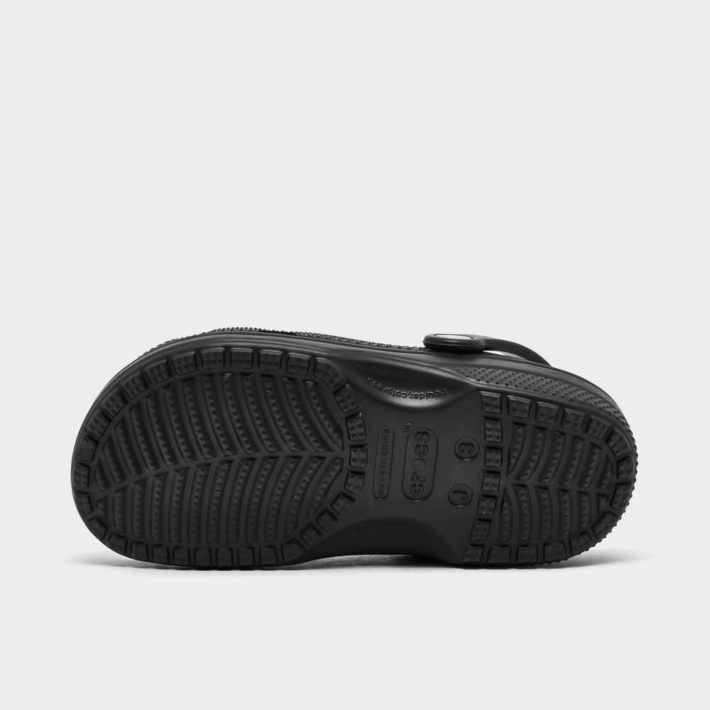 The Clog offers all-day comfort with lightweight foam and a molded footbed that contours underfoot. The slip-on design and adjustable heel strap allow quick on-off wear and secure fit. Children customize this clog using charms and enjoy breathable airflow through signature ventilation holes. Its durable construction stands up to daily wear and simplifies cleanup with a quick rinse. Secure Fit: Pivoting heel straps adjust to keep preschool shoes snug throughout active play. Easy Maintenance: Wipes clean quickly with mild soap and water to stay fresh daily. Personalized Style: Compatible with charms to customize each clog and show personality. Signature Comfort: Crocs technology delivers lightweight, flexible support with 360-degree cushioning experience. • Color: Black • Size: 2.0