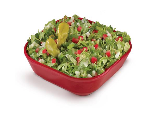 Chopped Salad - Romaine, tomato, bell pepper, cucumber, mozzarella, pepperoncini, and light Italian dressing. Can be ordered with meat or without meat.