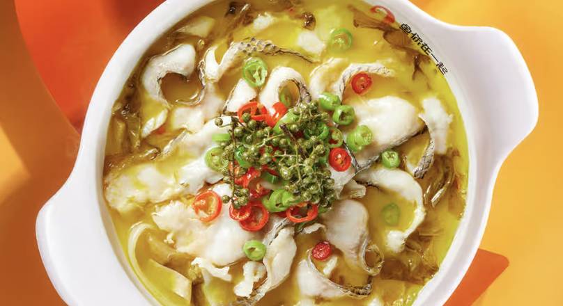 Spicy. Fish with pickled vegetables and green Sichuan peppercorns. Spicy and sour.