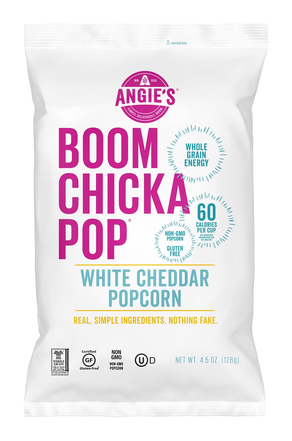 grab a bag of angie's boom chicka pop® white cheddar popcorn! 3, 2, 1, cheese! it will be hard not to smile while snackin' on these.non-gmo popcorn, gluten free, simple ingredients (nothing fake!)size: 4.5oz
