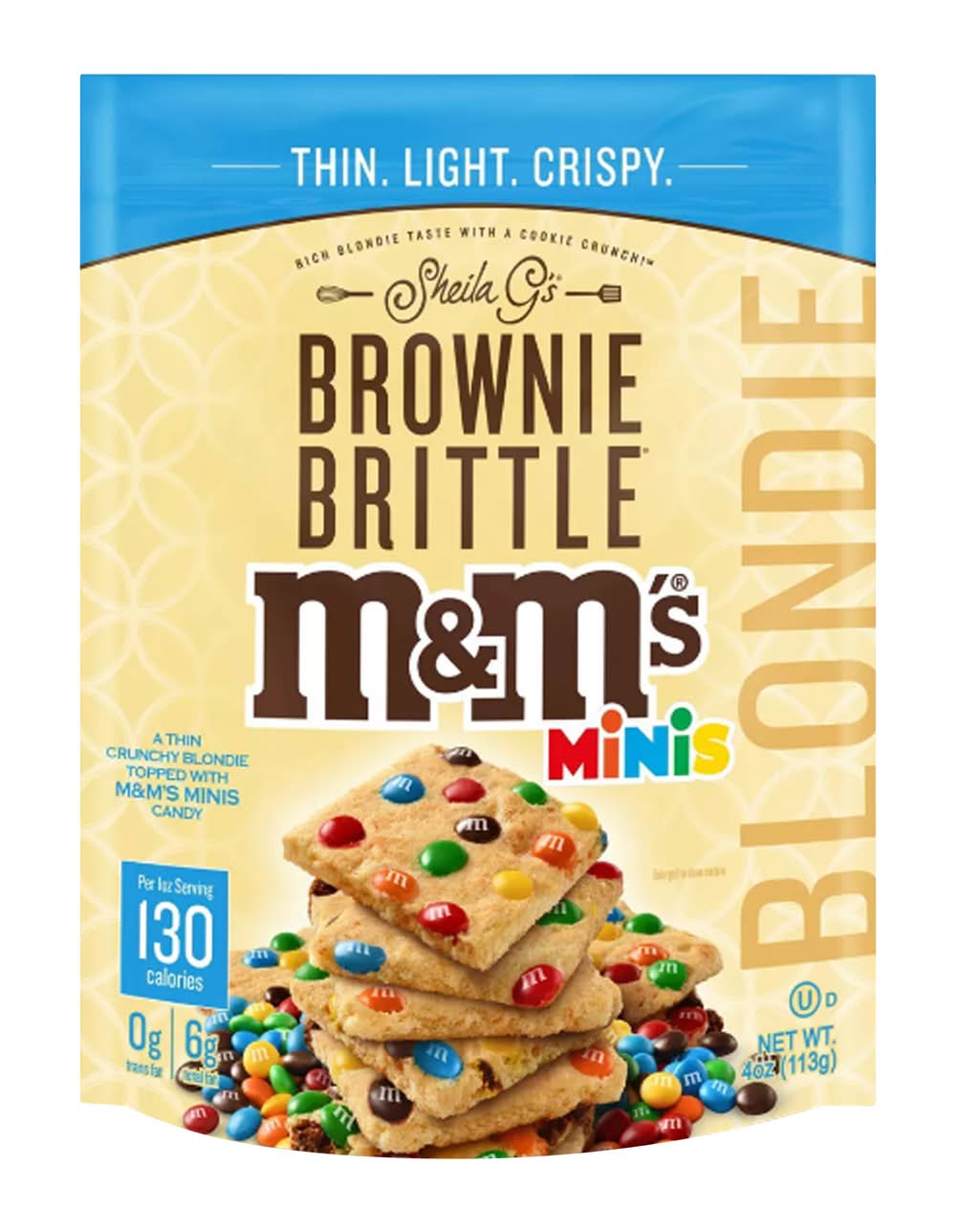 Get Sheila G's Brownie Brittle with M&M's Minis. It's crispy & chocolatey - everything you need to satisfy your sweet tooth!Rich blondie taste with a cookie crunch!®Size: 4oz0g trans fatCountry of Origin: USAAll candy is non-returnable