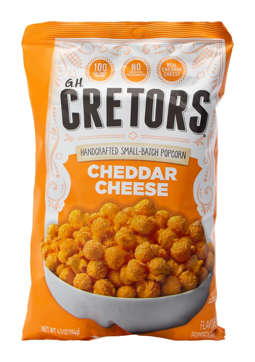 Munch on G.H. Cretors Cheddar Cheese Popcorn for a handcrafted cheesy & crunchy snack. More cheese please!Size: 6.5ozCountry of Origin: USA