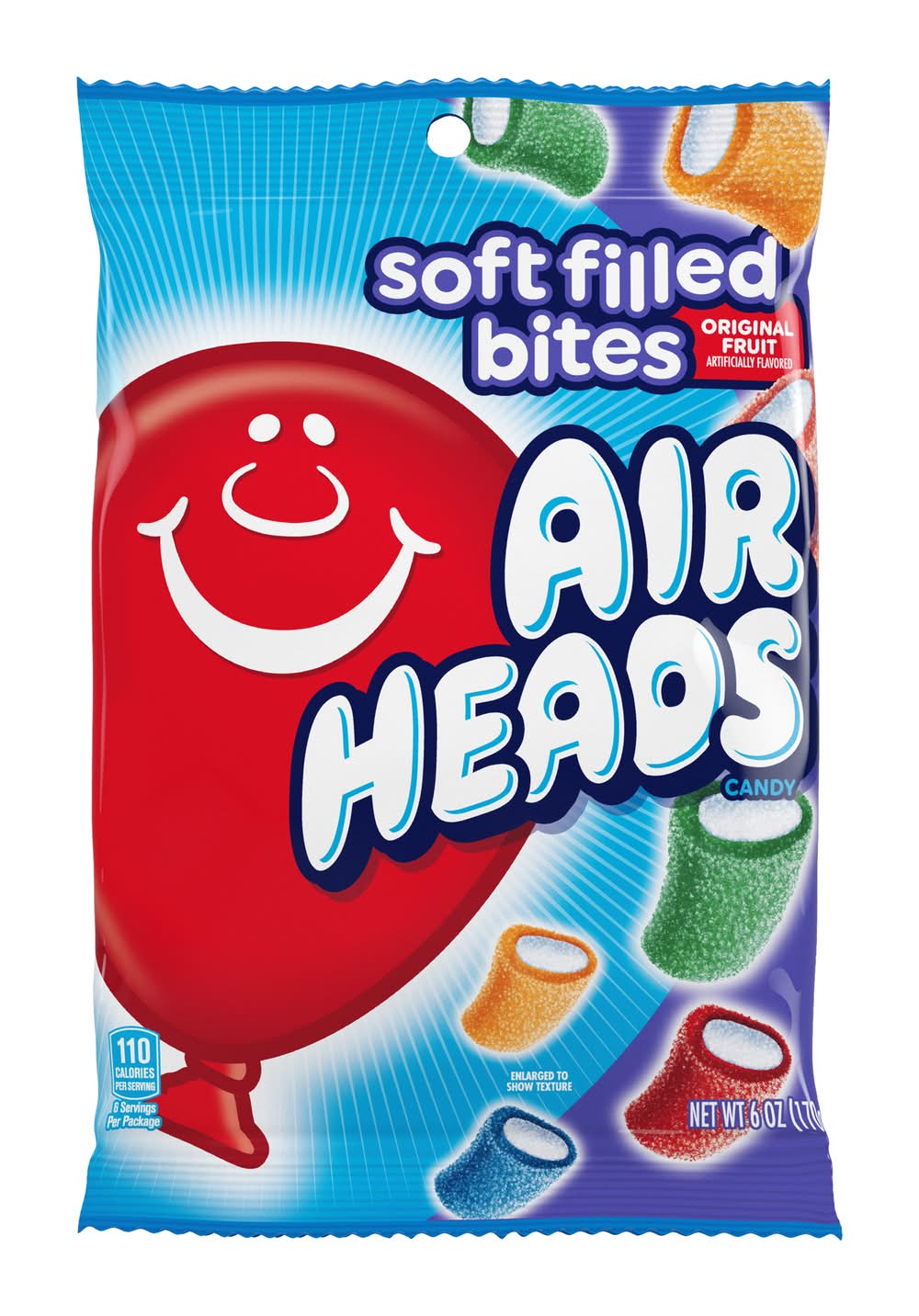 Try Airheads Soft Filled Bites Candy for a bite sized sweet treat. They're pillowy soft & satisfying to chew!Flavor: Original FruitSize: 6ozCountry of Origin: ImportedAll candy is non-returnable