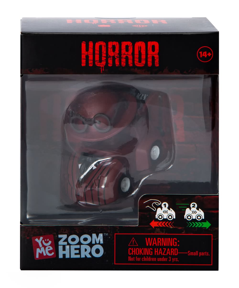 Race with Zoom Hero Horror Pull-Back Toy Cars to compete with your friends to the finish line - may the spookiest racer win!Collect them allAges: 14+ (Choking Hazard)Country of Origin: Imported Color: Crooked man