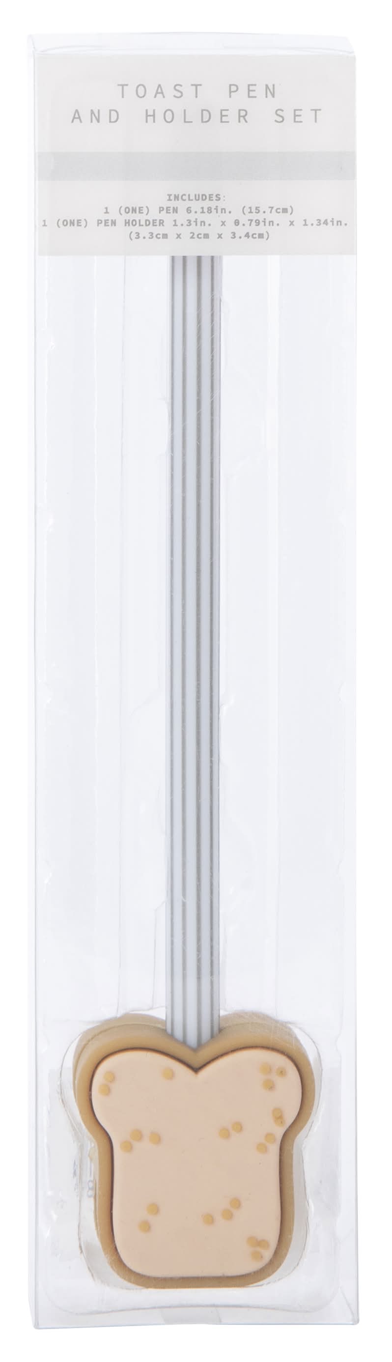 Brighten up your day with a Pen & Holder Set. Add it to your stationery collection!A cute & quirky pen to cheer you on at work or school.Incudes 1 pen, 1 pen holderCountry of Origin: Imported Color: Toast