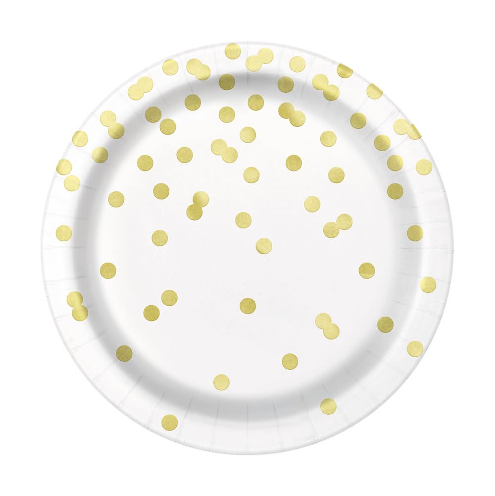 7in Gold Dot Paper Dessert Plates 8-Count