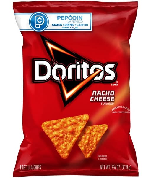satisfy your snack craving with doritos®! these nacho cheese chips are a classic for a reason. crunchy, cheesy, savory, delicious.size: 2.75ozCountry of Origin: usa