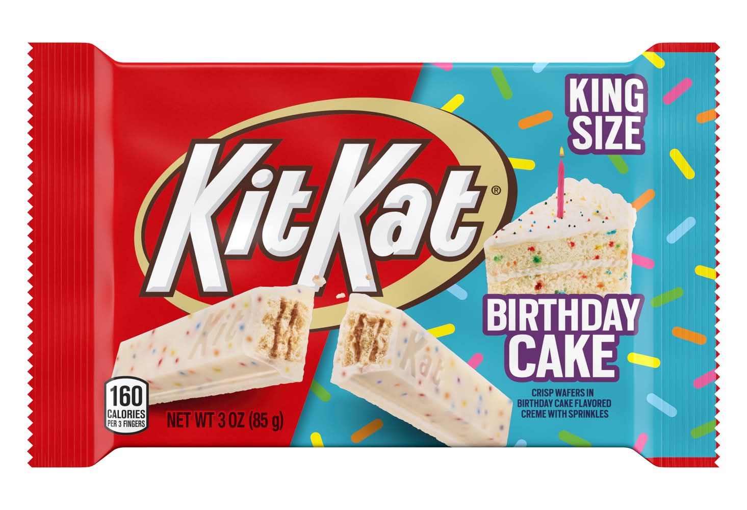 'Cake' it easy & treat yourself to a Kit Kat King Size Candy Bar. Crisp wafers in birthday cake flavored creme - yum!It's not a birthday cake without sprinkles.Flavor: Birthday CakeSize: 3ozCountry of Origin: USAAll candy is non-returnable Packaging: Reusable