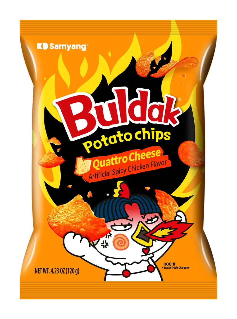 Bring the heat! These Buldak-flavored chips are bold, spicy, and not for the weak-tongued.Size: 4.23ozCountry of Origin: Imported Color: Quattro cheese