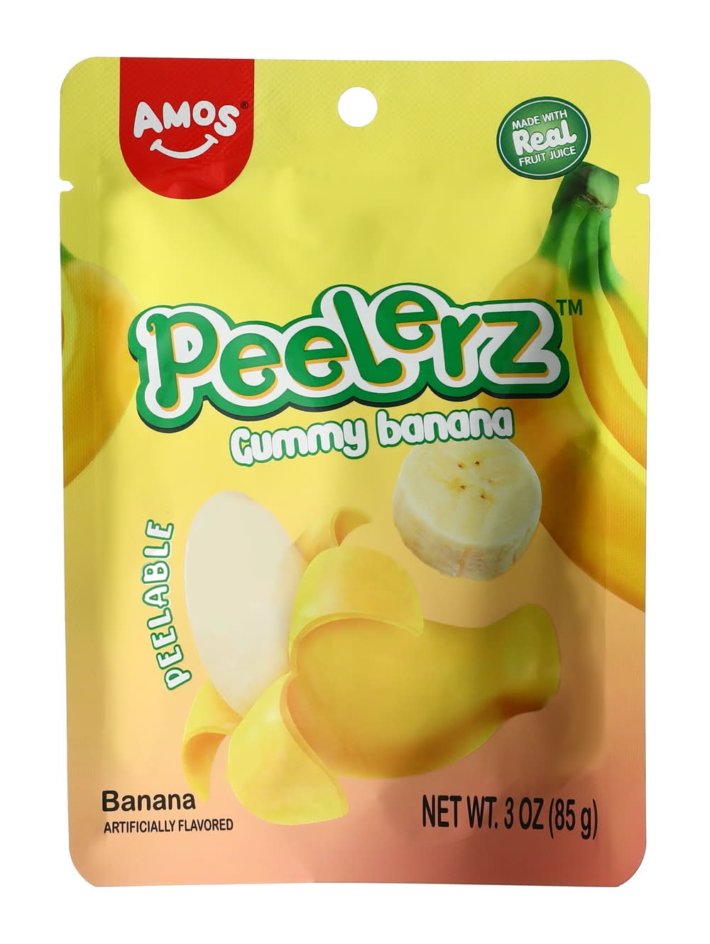 Try out Peelerz Gummy Banana Candy for a satisfying peel & a delicious fruity taste. Peelable candy? So delish!Made with real fruit juice.Size: 3ozCountry of Origin: ImportedAll candy is non-returnable