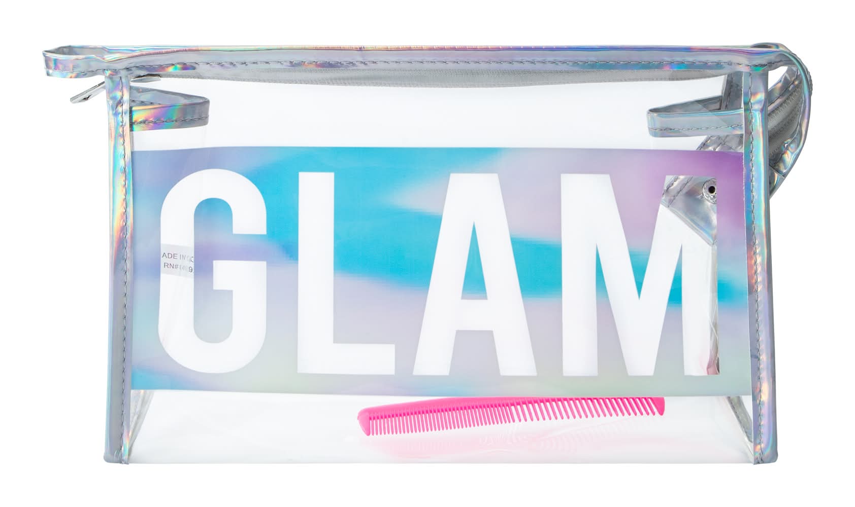 Stash your makeup in style with this Holographic Glam Cosmetic Bag & shine bright like a diamond.Includes bonus comb.Country of Origin: Imported