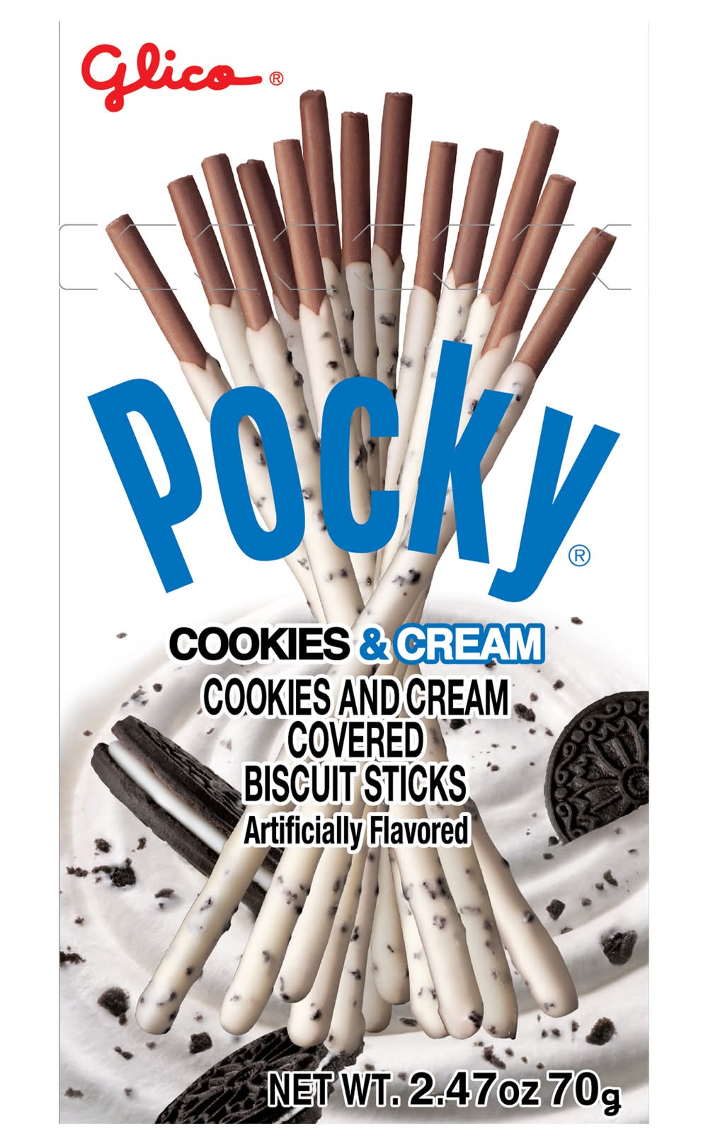crunch the most delish treat, pocky® cookies & cream covered biscuit sticks!size: 2.47ozCountry of Origin: importedAll candy is non-returnable