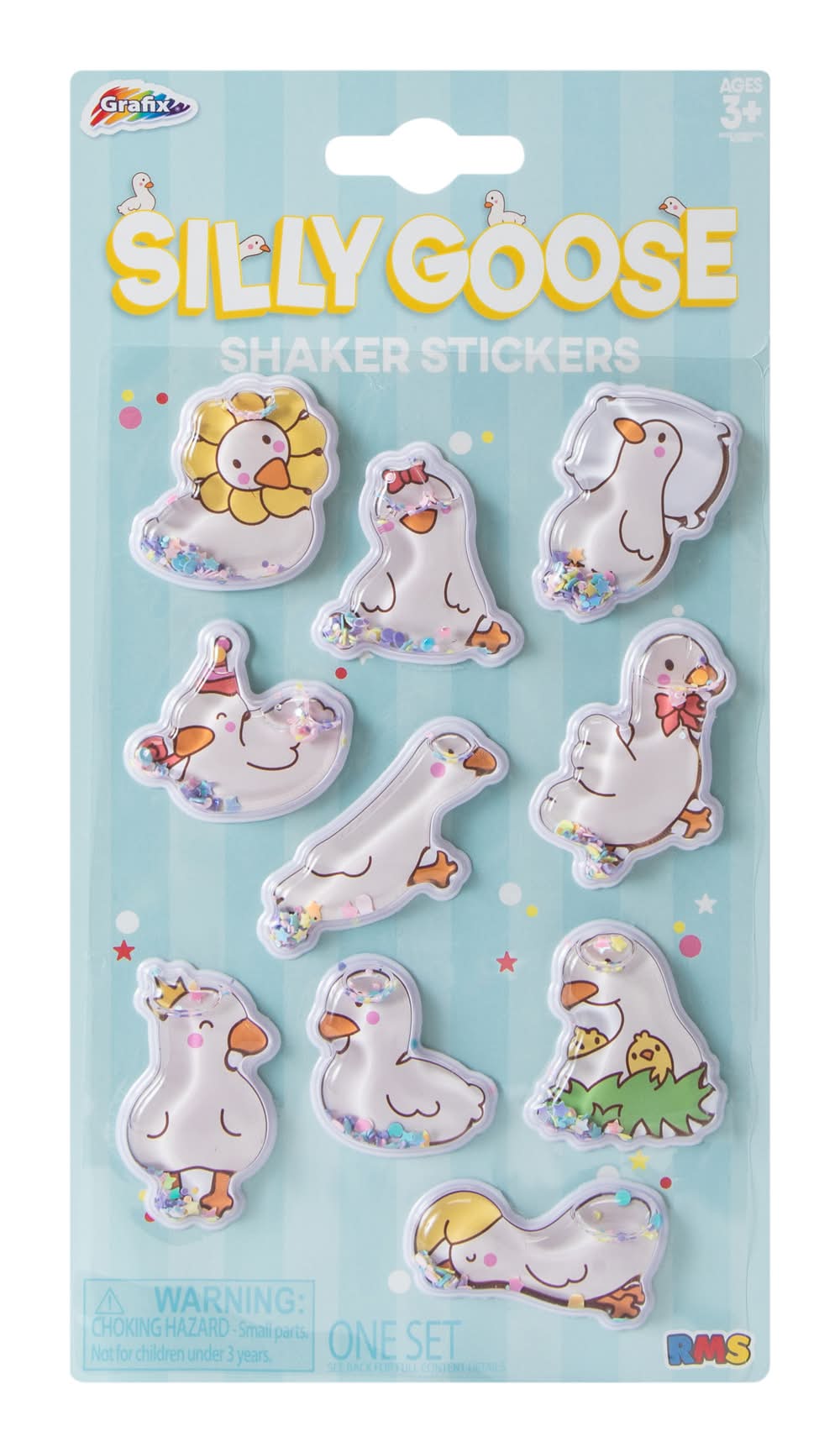 Bedazzle your life! These shaker stickers add bling to phones, laptops & journals—get creative & sparkle on.Ages: 3+ (Adult supervision required)Country of Origin: Imported Color: Silly goose