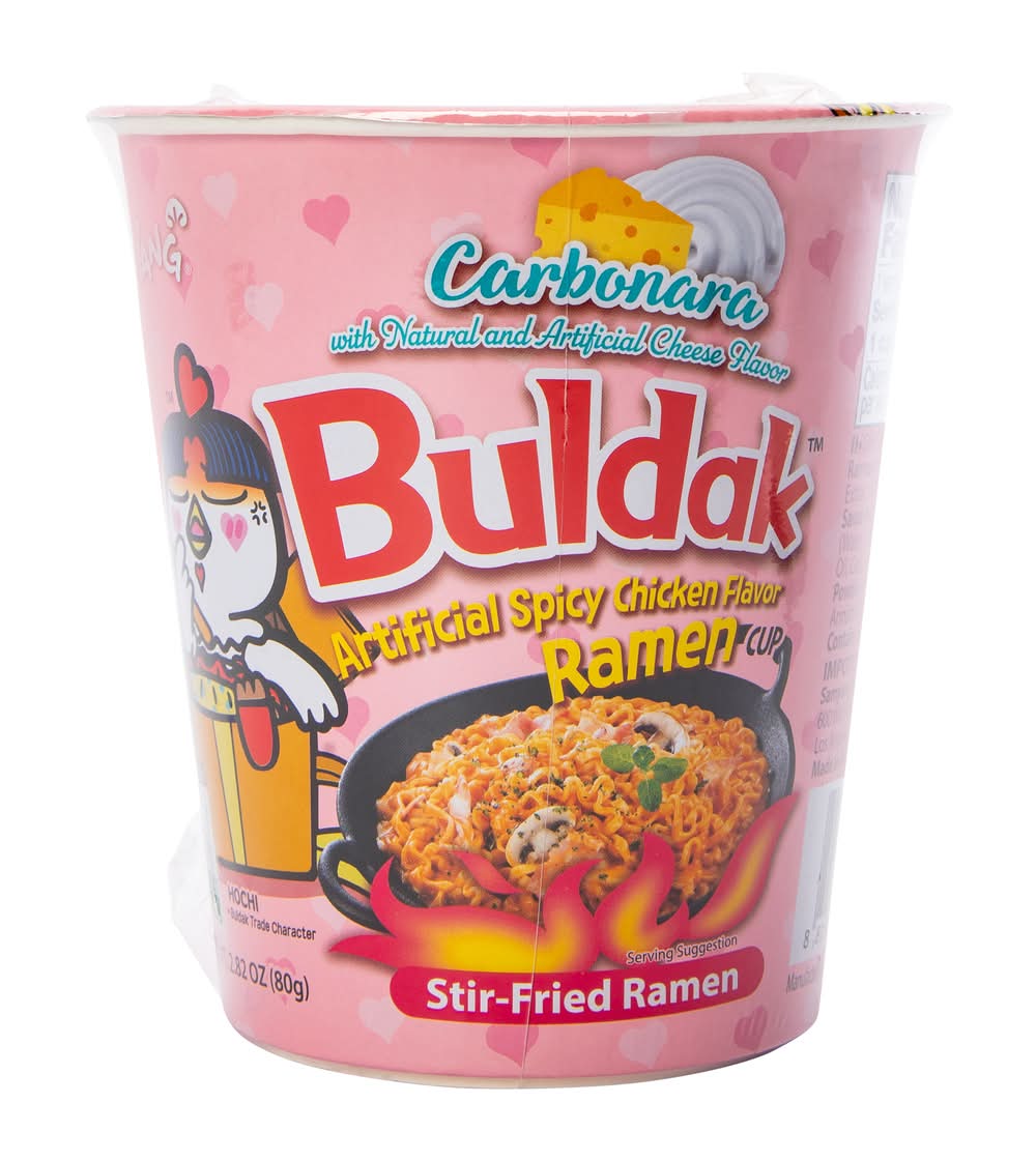 Munch on a Buldak Ramen Cup for a quick & easy noodle meal that tastes sooo good!Size: 2.82ozCountry of Origin: Imported Color: Carbonara