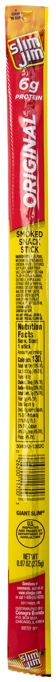 the not-so-slim jim® is back! chomp into this giant slim® smoked snack stick to satisfy your snack craving.size: 0.97ozCountry of Origin: usa