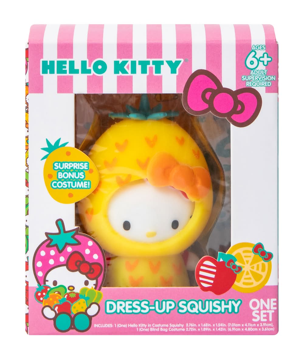 Squish, style, and play with this adorable Hello Kitty® dress-up squishy set.With surprise bonus costume!Ages: 6+ (Adult supervision required)Country of Origin: Imported Color: Pineapple/avocado
