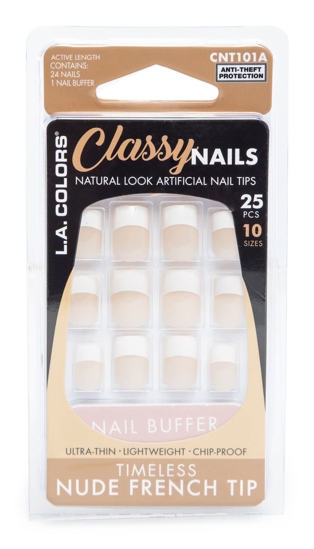 get the perfect classic nails with the l.a. colors® nude french tip artificial nail tips 25-piece nail kit!includes: 25 faux nailsCountry of Origin: imported