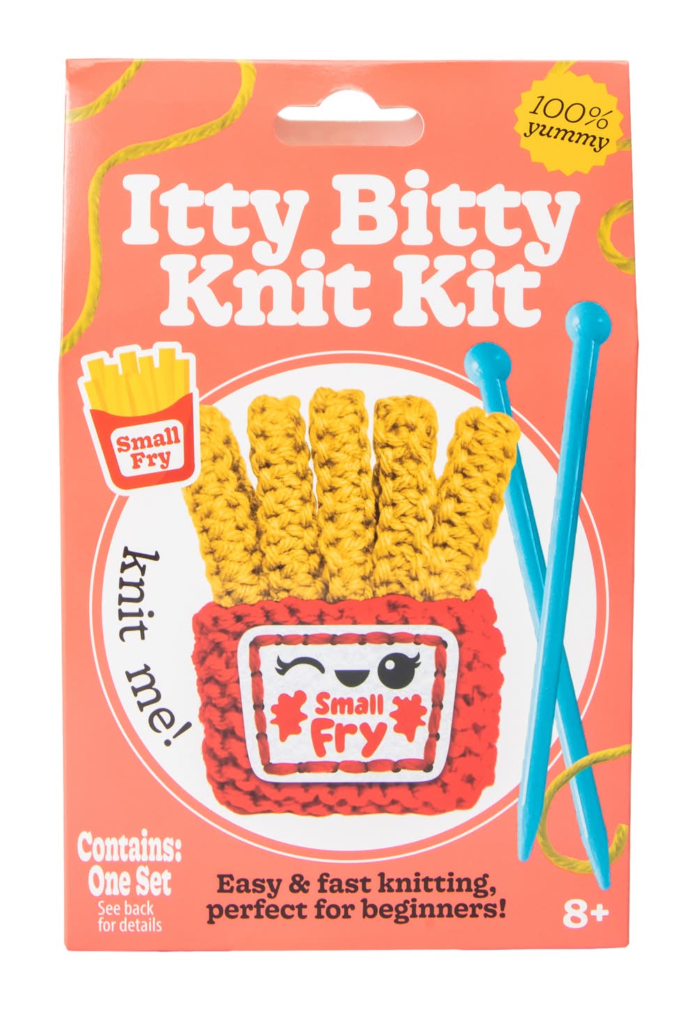 Mini knitting kit for foodies. Make tiny edible crafts!Easy & fast knitting, perf for beginnersAges: 8+Country of Origin: Imported Color: Small fry