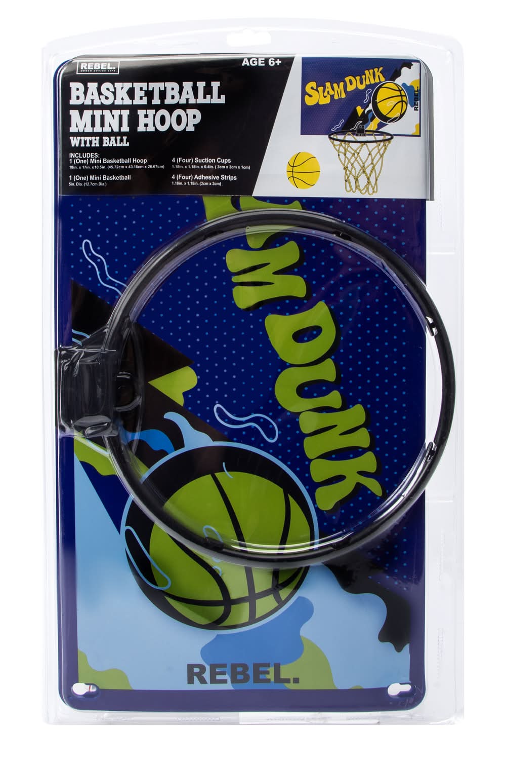 It's NEW, it's beyond $5 and still waaay below the rest! (but blink, and it's gone!)Score big fun anywhere with a basketball mini hoop and ball set.Includes 1 mini basketball hoop, 4 suction cups, 1 mini basketball & 4 adhesive stripsAges: 6+Country of Origin: Imported Color: Slam dunk