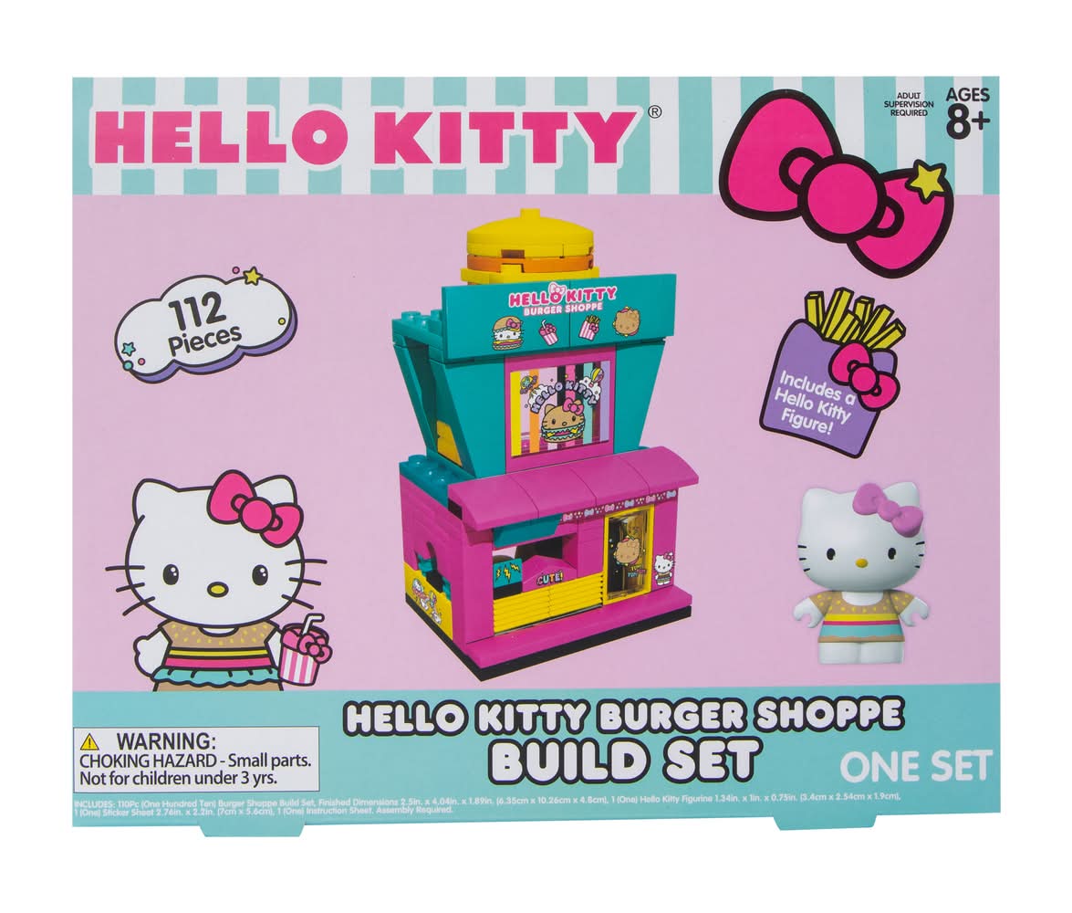 Construct a Hello Kitty play set with this awesome build kit. Explore the Sanrio world & create your own journeys!Includes 1 build set & 1 hello kitty figureCountry of Origin: Imported Color: Burger shop