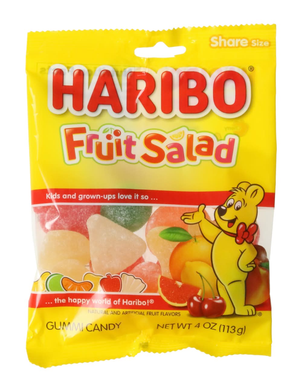 get so much yum with haribo® fruit salad gummi candy! so many delicious flavors, all in one place.size: 4ozCountry of Origin: importedAll candy is non-returnable