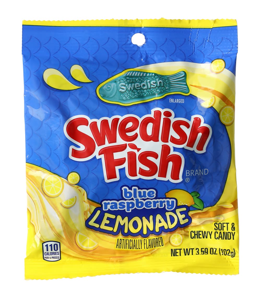 awaken your tastebuds to swedish fish blue raspberry lemonade for chewy deliciousness. basically a lemonade stand in a bag!soft & chewy candysize: 3.59oz.Country of Origin: importedAll candy is non-returnable Color: Blue raspberry lemonade