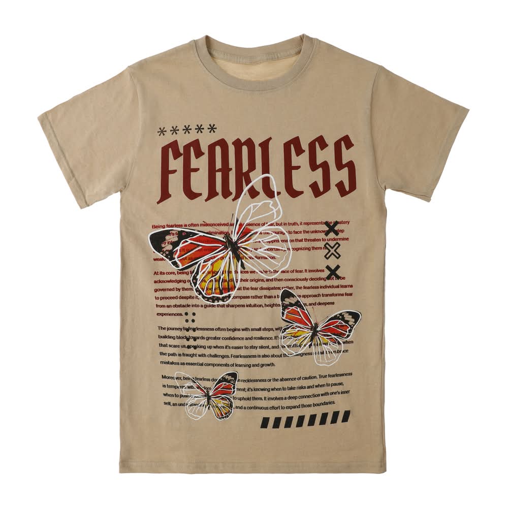 Spread your wings and rep your fearless vibe with the Fearless Butterfly Graphic Tee.Adult Unisex Sizes: S-XLView Size ChartCountry of Origin: Imported • Color: Cream • Size: Large