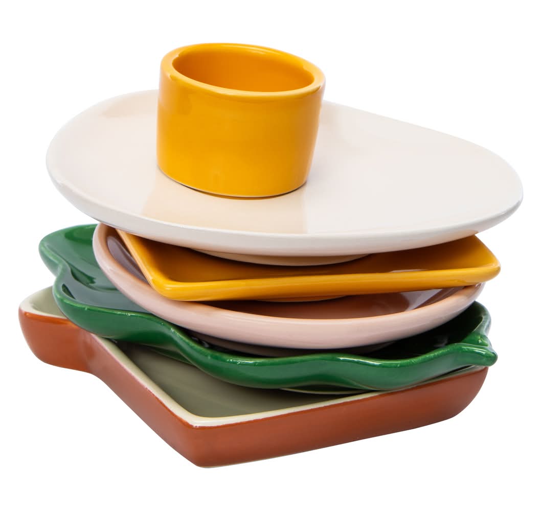 Grab this Breakfast Plate Set - everything you need to make a stackable sandwich made of plates! These look so cute on your table.Includes 1 toast plate, 1 lettuce plate, 1 ham plate, 1 cheese plate, 1 egg plate, 1 yolk cupCountry of Origin: Imported