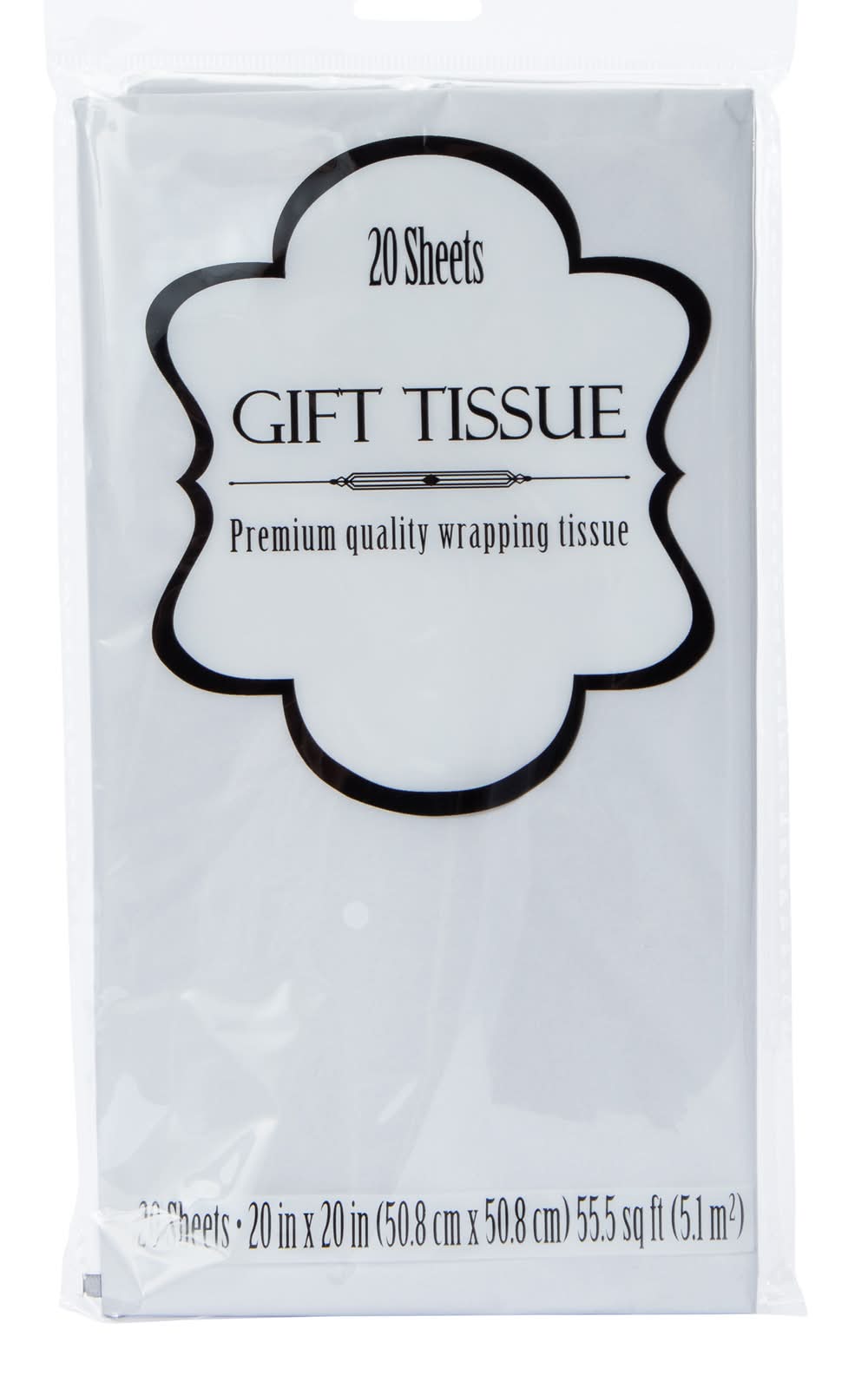 Keep a pack of White Gift Tissue Paper on hand for last minute gift wrapping. Perf for any & every occasion, use it alone or pop it in a gift bag!Includes 20 sheetsSize: 20in (W) x 20in (L)Country of Origin: Imported