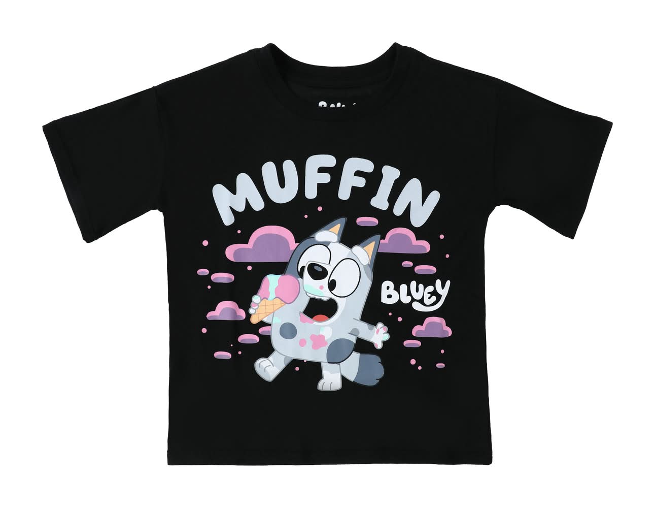 Snacktime icon alert—this Bluey tee brings big Muffin energy to the fit.Kid Sizes: S (3/4), M (5/6), L (7/8), XL (10/12)View Size ChartCountry of Origin: Imported • Color: Black • Size: 5/6