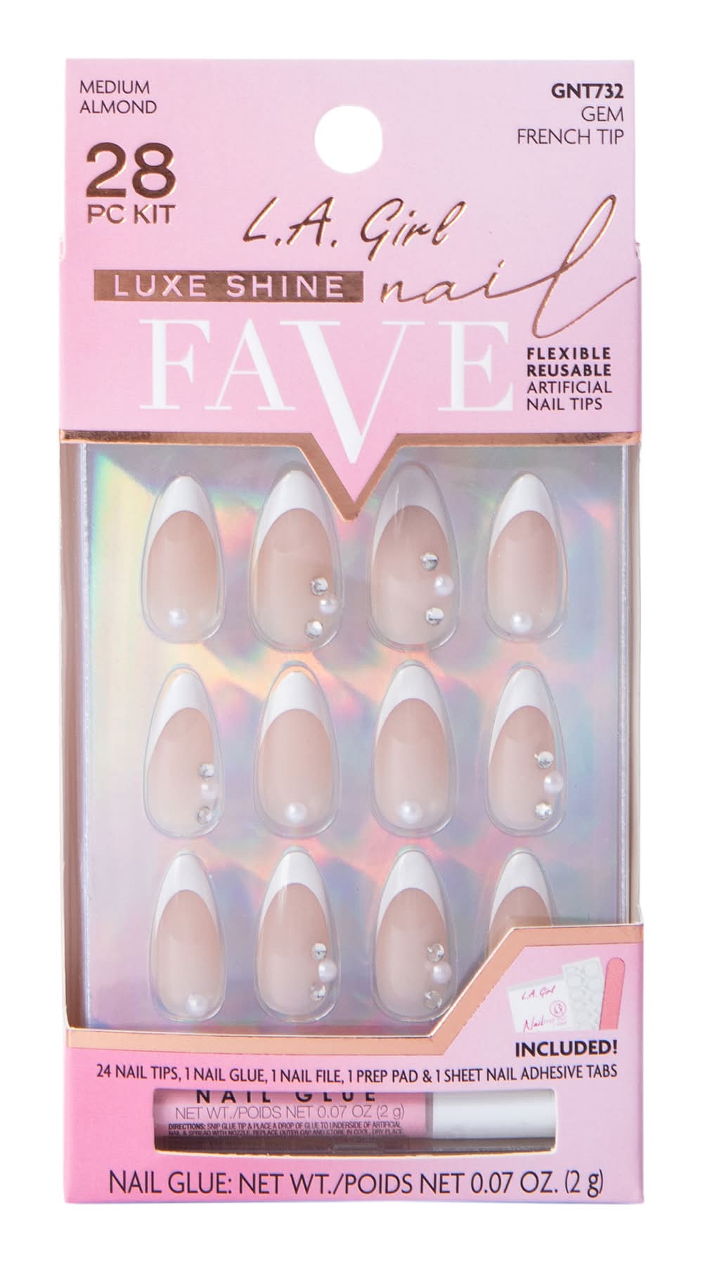 L.A. Girl Fave Gem French Tip Luxe Shine Nails Kit 28-Pcs Gem French Tip