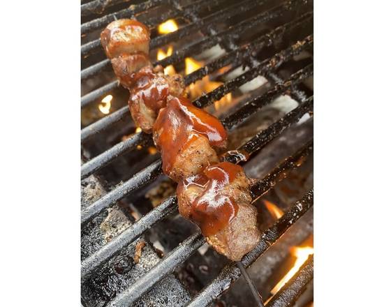 Skewers of marinated pork.