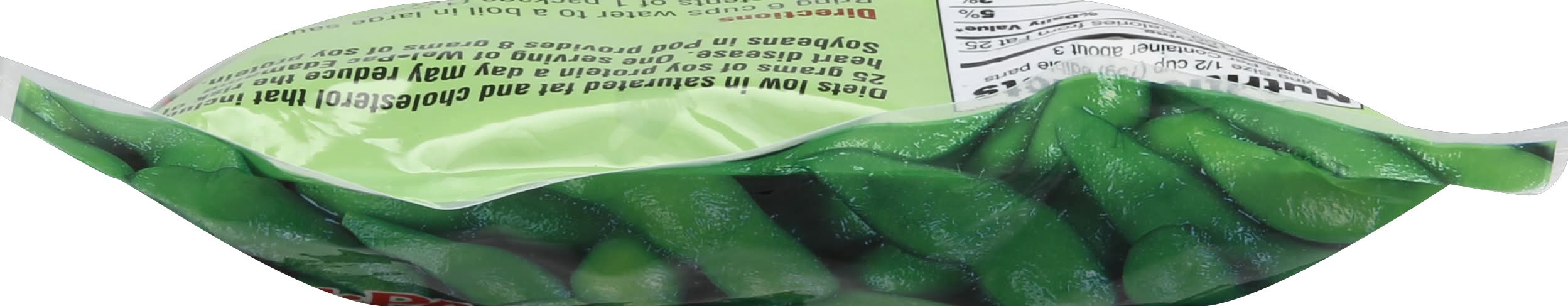 Edamame Soybeans in Pod are a convenient snack option that can be prepared quickly. Each serving contains 8 grams of soy protein. Incorporating soy protein into a diet low in saturated fat and cholesterol may contribute to heart health. These soybeans are grown and harvested in China. Number of servings: 3