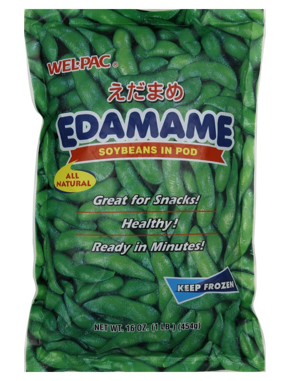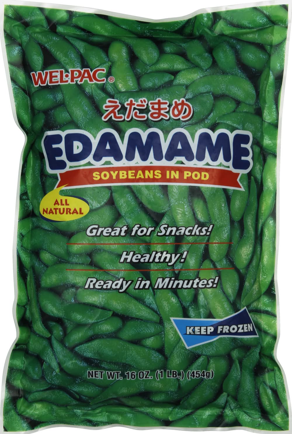 Keep frozen. bring 6 cups water to a boil in large saucepan. add content of 1 package (1 lb.) frozen, well-pac edamame and 1/2 teaspoon salt (optional). return to a boil. cover and cook 5 to 6 minutes. drain. serve, hot or cold, as an appetizer or snack. open pod; eat the beans inside and discard pod. or, add cooled, shelled beans to tossed green, bean or pasta salads, as desired.