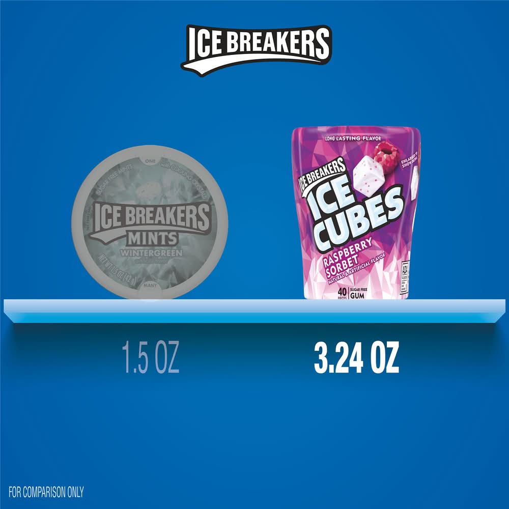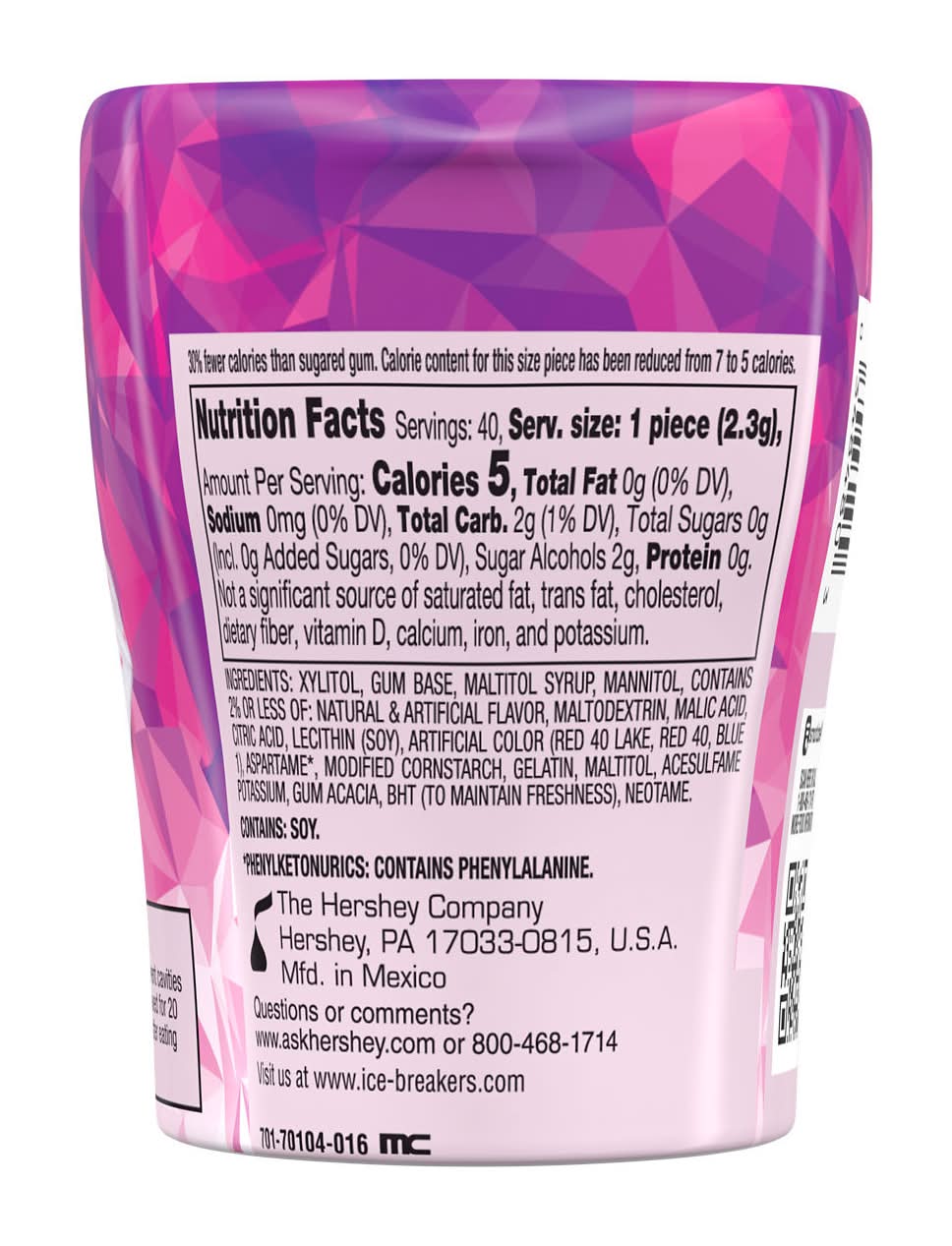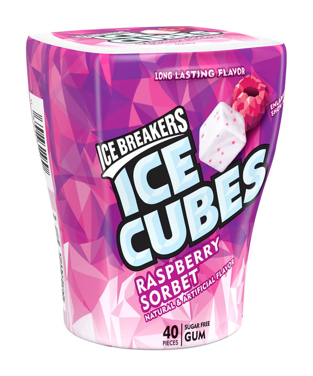 ICE BREAKERS Ice Cubes Raspberry Sorbet Sugar Free Chewing Gum Bottle, 3.24 oz (40 Pieces) • Flavor: Raspberry sorbet • Hershey, City:Hershey,State/Province:PA,ZIP:17033-0815,Country:USA,Phone:800-468-1714,Website:www.askhershey.com