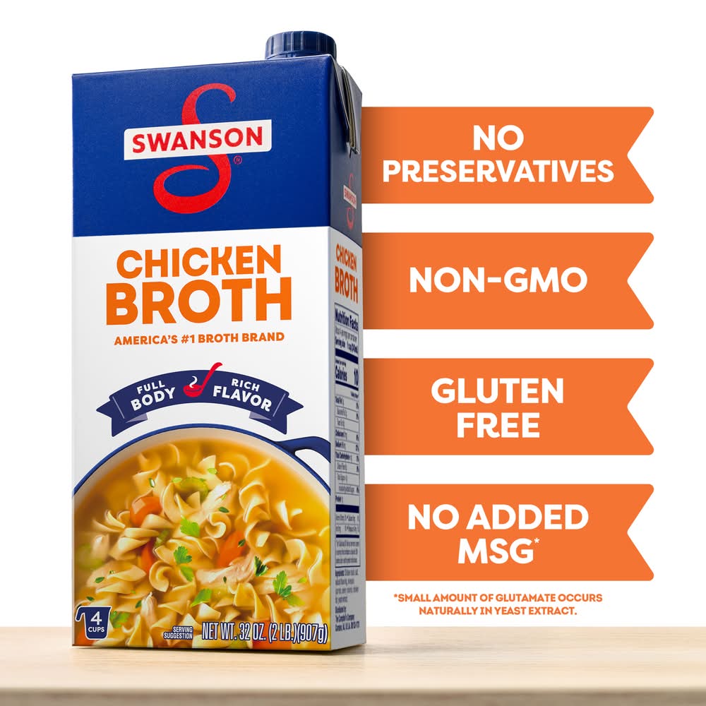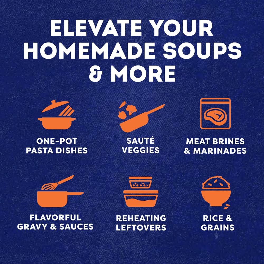 Elevate your homemade meals with the rich, perfectly balanced flavors of farm-raised chicken, vegetables picked at the peak of freshness, and high-quality seasonings in a convenient recyclable carton. And just like homemade, our broth uses only 100% natural, non-GMO ingredients, with artificial flavors or colors, and no preservatives. More convenient than chicken bouillon, product) Campbell Soup Company., Campbell,NJ,USA