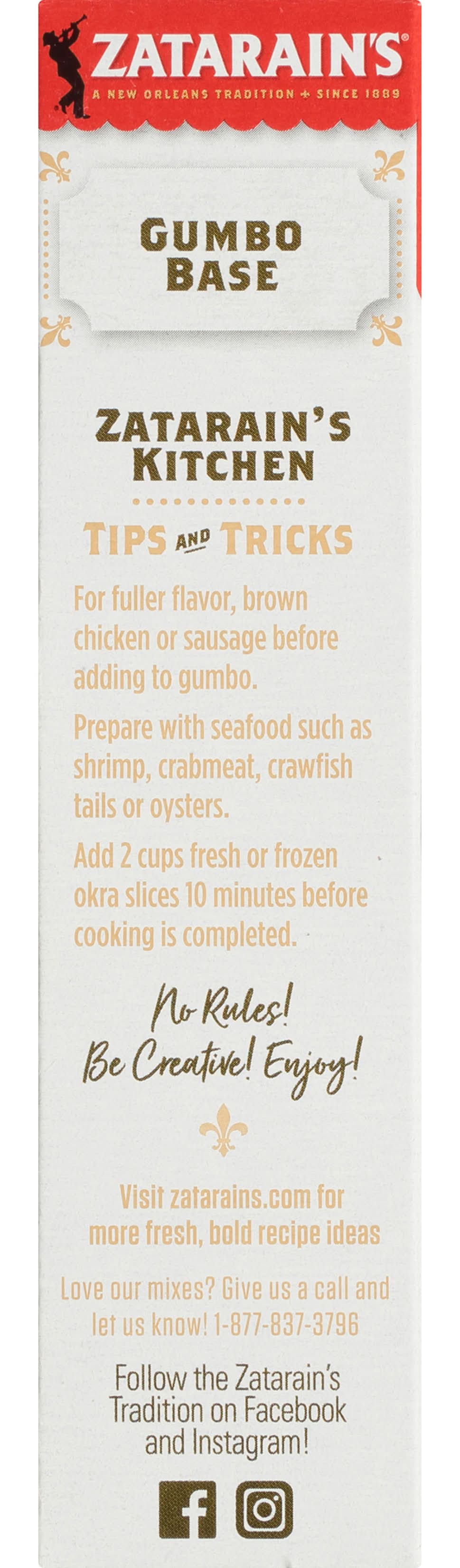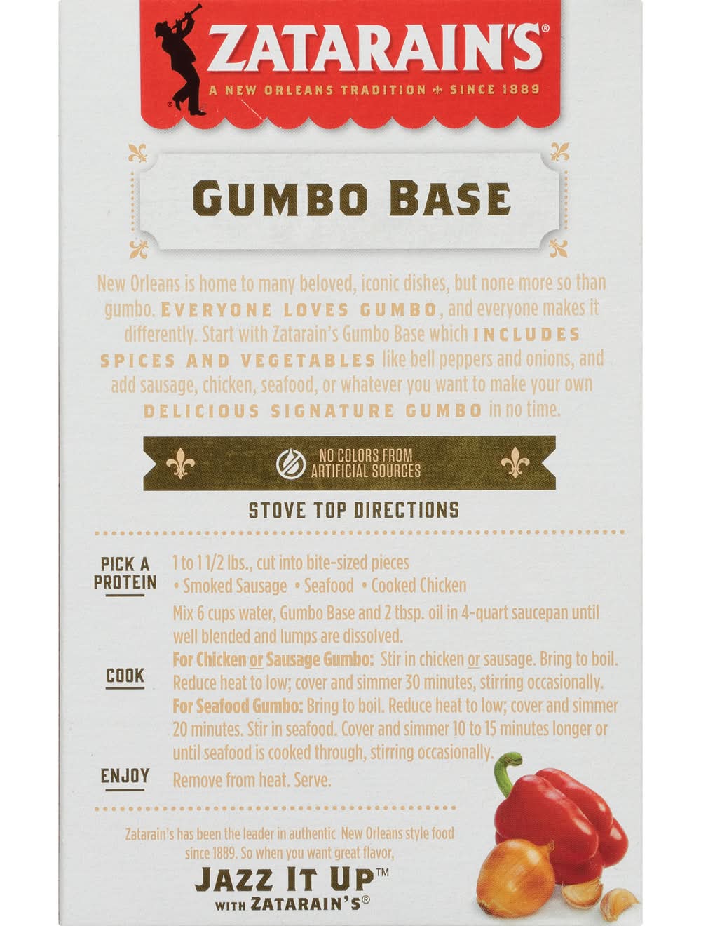 Zatarain's Gumbo Base brings the flavor and soul of New Orleans to your kitchen with this mix of zesty spices, flour and vegetables. Zatarain's Gumbo Base brings the secret to New Orleans gumbo home.