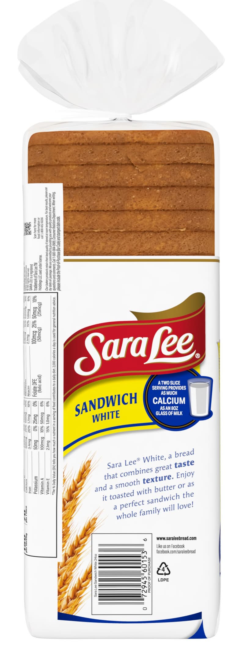 Sara Lee® White, a bread that combines great taste and a smooth texture. Enjoy it toasted with butter or as a perfect sandwich the whole family will love. • Bimbo Bakeries USA, Inc., Horsham, PA, 19044 • Packaging: Reusable