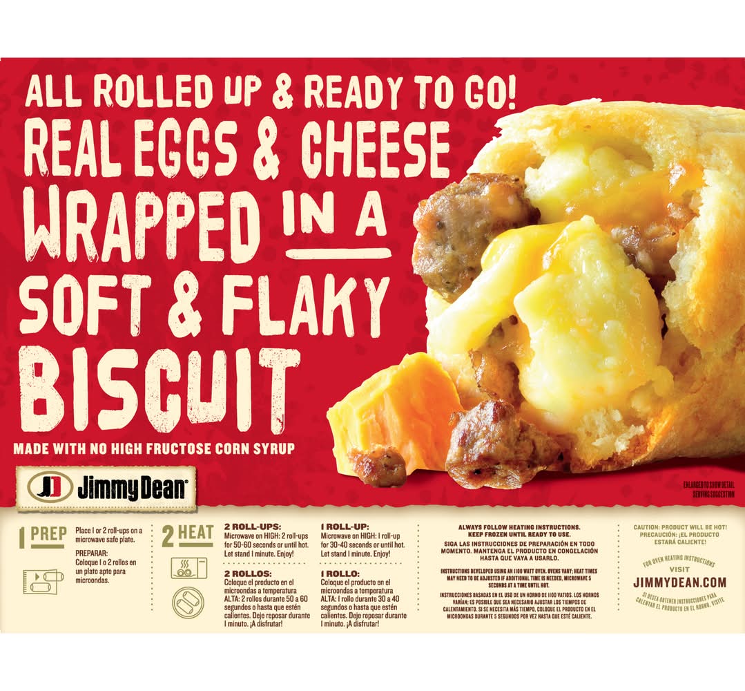 Fully Cooked Biscuit Roll Ups, Sausage, Egg and Cheese • The Hillshire Brands Company, Chicago, IL, 60607 • Packaging: Reusable