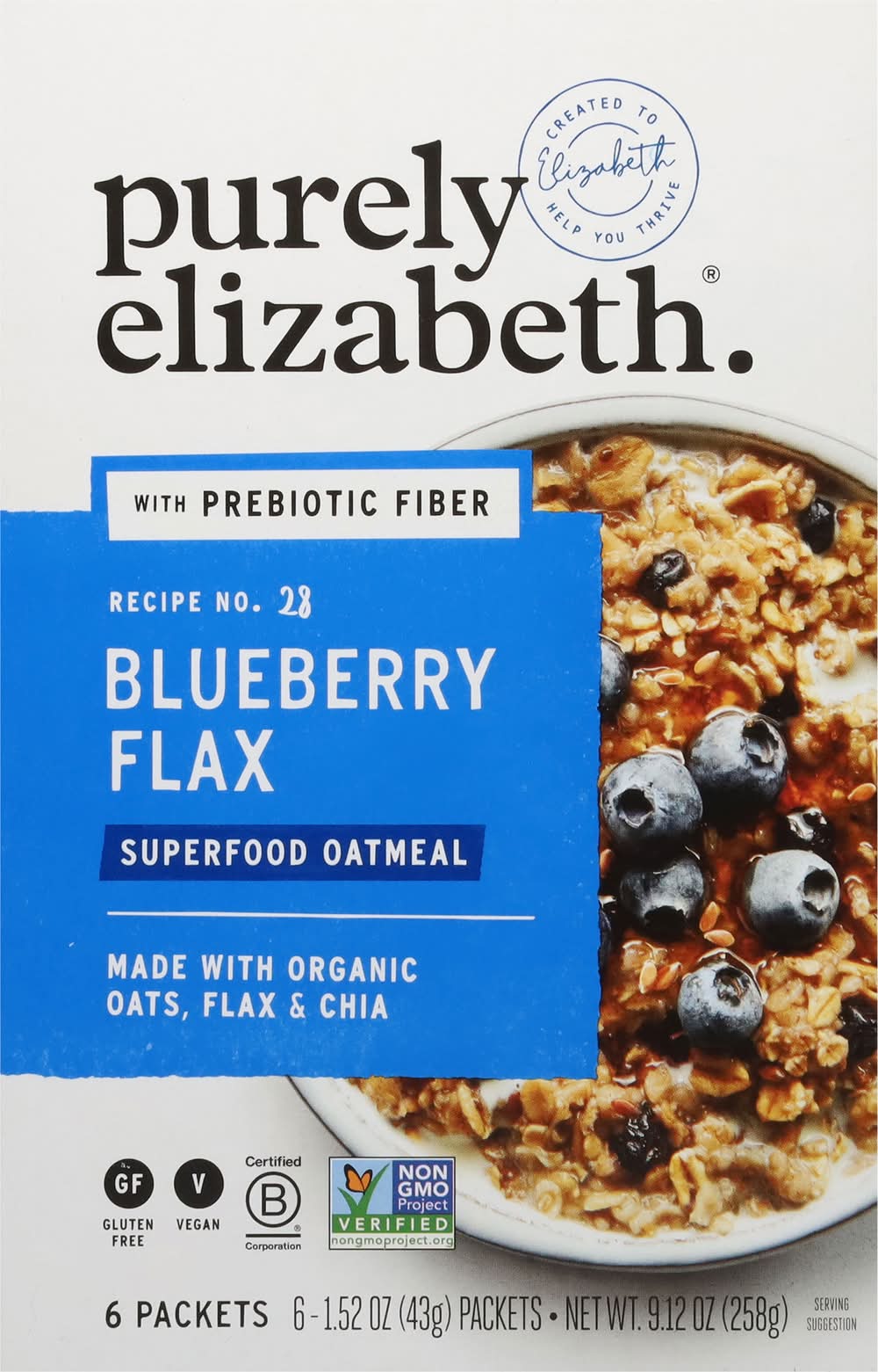 Purely Elizabeth Superfood Oatmeal, Blueberry Flax (1.52 oz, 6 ct)