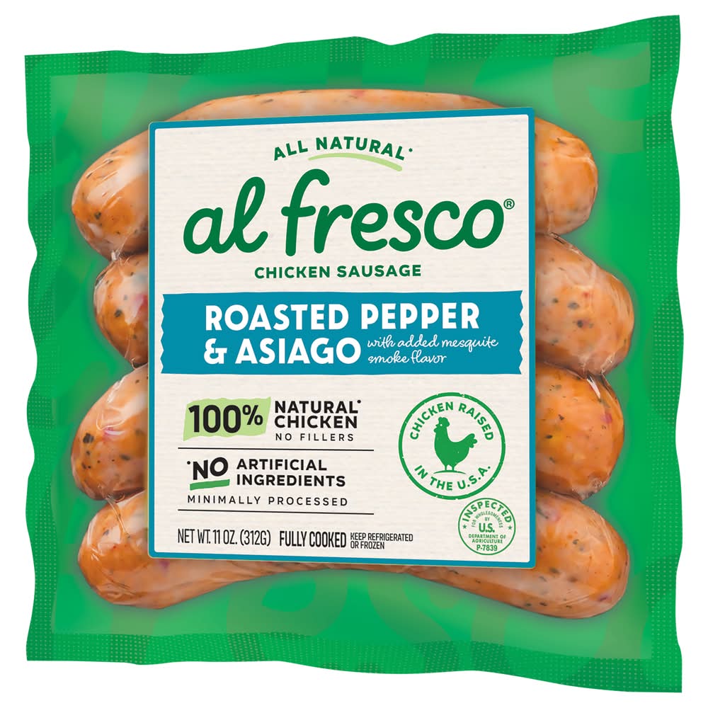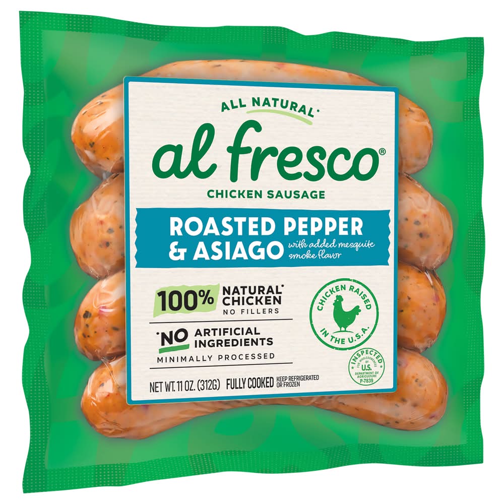 Chicken Sausage, Roasted Pepper & Asiago with Added Mesquite Smoke Flavor • Size: 11.00 OZ • Number of servings: 4