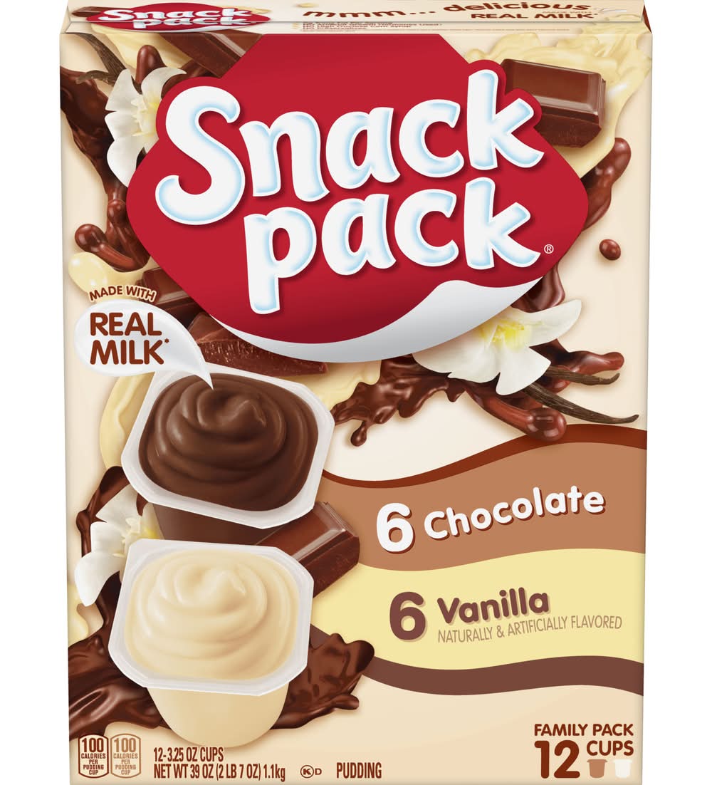 Snack Pack Pudding Family pack, Chocolate-Vanilla (39 oz, 12 ct)