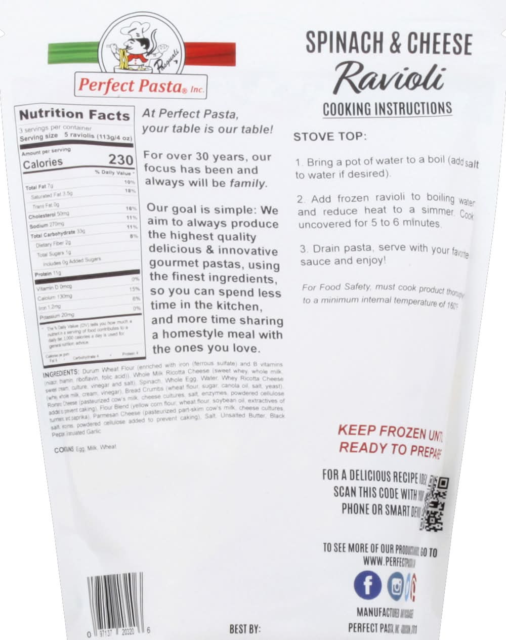 Perfect Pasta Spinach & Cheese Ravioli (12 oz)