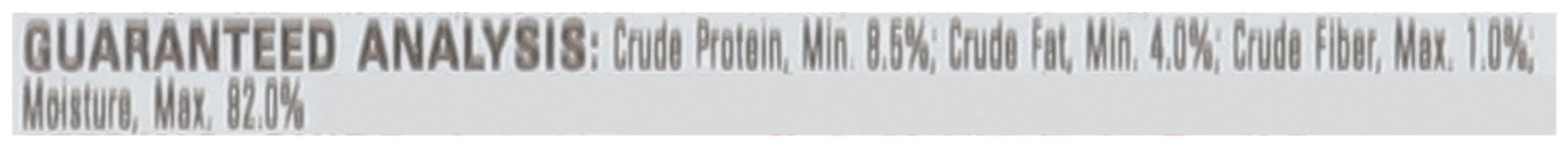 Ingredients: Chicken, Beef Lung, Chicken Liver, Chicken Broth, Water, Pork By-Products, Chicken Heart, Calcium Carbonate, Sodium Tripolyphosphate, Carrageenan, Potassium Chloride, Xanthan Gum, Magnesium Proteinate, Dried Yam, DL-Methionine, Salt, Erythorbic Acid (Preservative), Grilled Chicken Flavor, Guar Gum, Natural Flavor, Zinc Sulfate, Vitamin E Supplement, Monocalcium Phosphate, Copper Sulfate, Thiamine Mononitrate (Vitamin B1), Sodium Nitrite (for Color Retention), D-Calcium Pantothenate, Vitamin D3 Supplement, Potassium Iodide