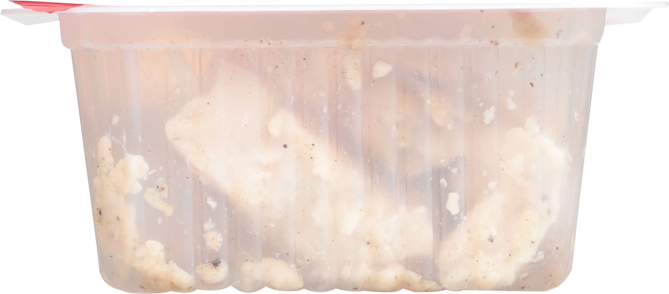 Ingredients: Chicken: Chicken Breast, Water, Dehydrated Chicken Broth Flavor (Chicken Broth, Natural Flavor), Vinegar, Potato Starch, Canola Oil, Rice Starch, Salt, Spice, Bbq Sauce: Invert Sugar, Water, Tomato Paste, Distilled Vinegar, Brown Sugar, Contains Less than 2% of Mustard, Salt, Modified Corn Starch, Chili Peppers, Worcestershire Sauce (Distilled Vinegar, Molasses, Corn Syrup, Water, Salt, Caramel Color, Garlic Powder, Sugar, Spices, Tamarind, Natural Flavor), Garlic Powder, Onion Powder, Paprika, Turmeric, Spices, Natural Flavor, Xanthan Gum, Caramel Color to Maintain Freshness: Potassium Sorbate, Sodium Benzoate Contains: Mustard, Corn